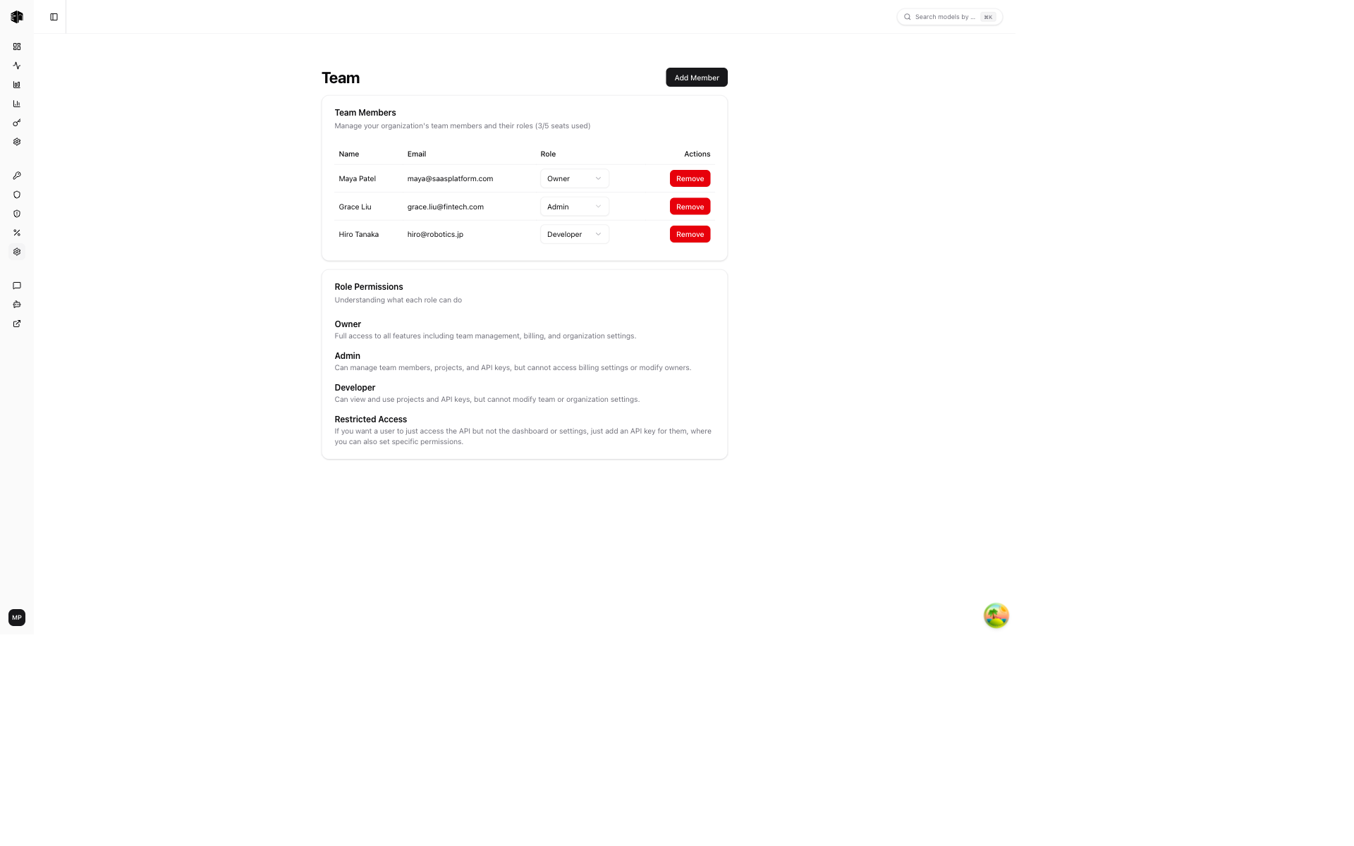 Manage team members and their roles within your organization