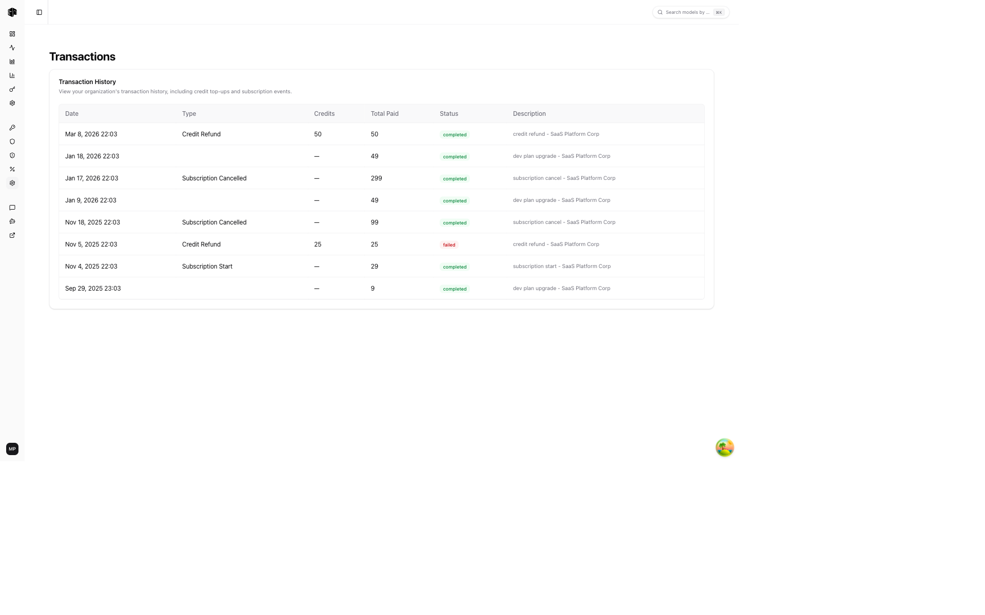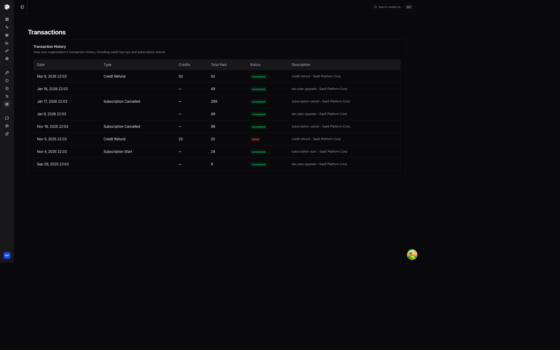 | Credit Refund | Credits refunded to your account |